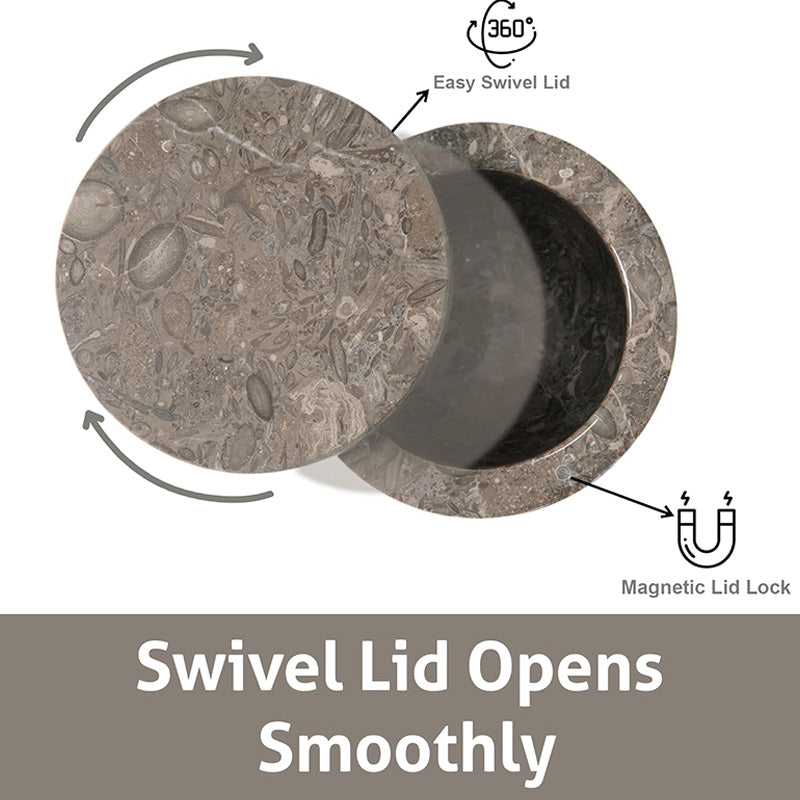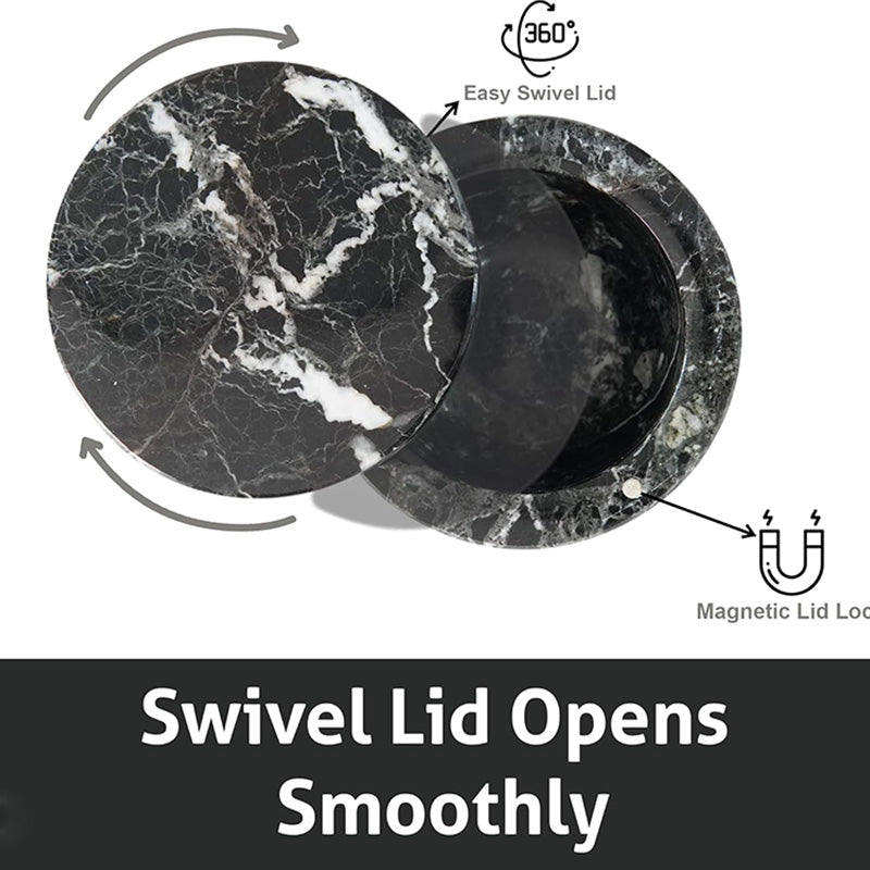 The smart magnetic swivel lid allows smooth one-hand access while protecting contents from moisture and dust. Its modern black marble finish with natural white veining makes it a perfect addition to contemporary, farmhouse, or luxury kitchens.