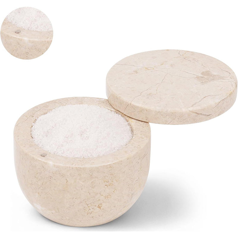 Marble Salt Cellar Big with Magnetic Lid Handmade Kitchen Salt & Spice Container