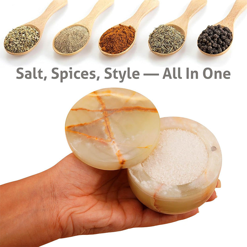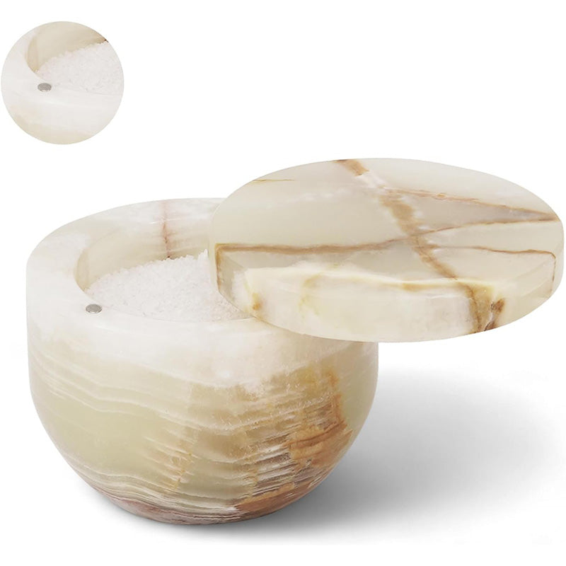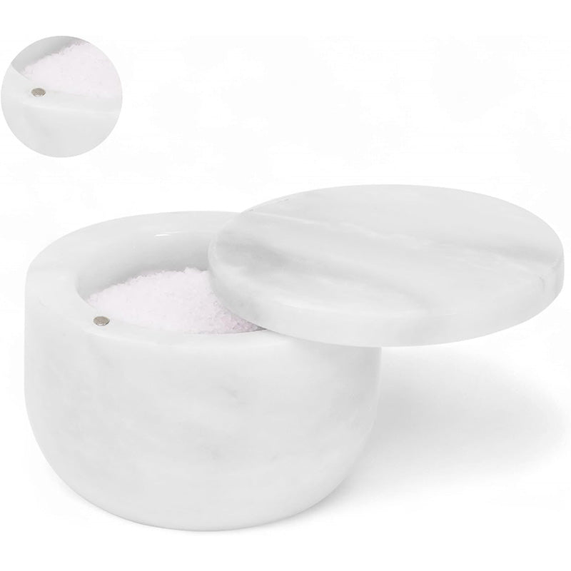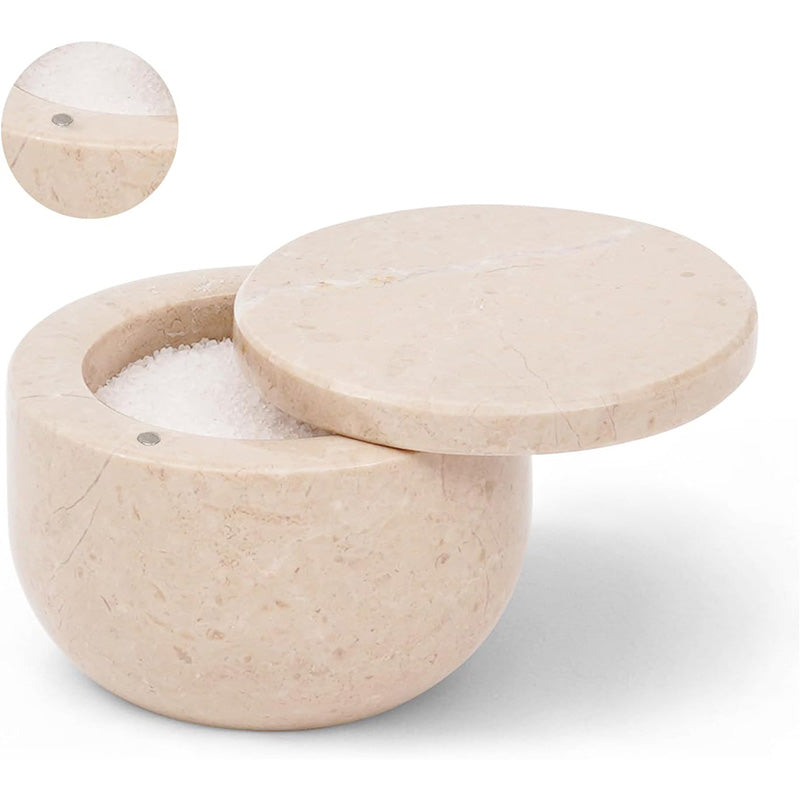 Marble Salt Cellar Small with Magnetic Lid Handmade Kitchen Salt & Spice Container