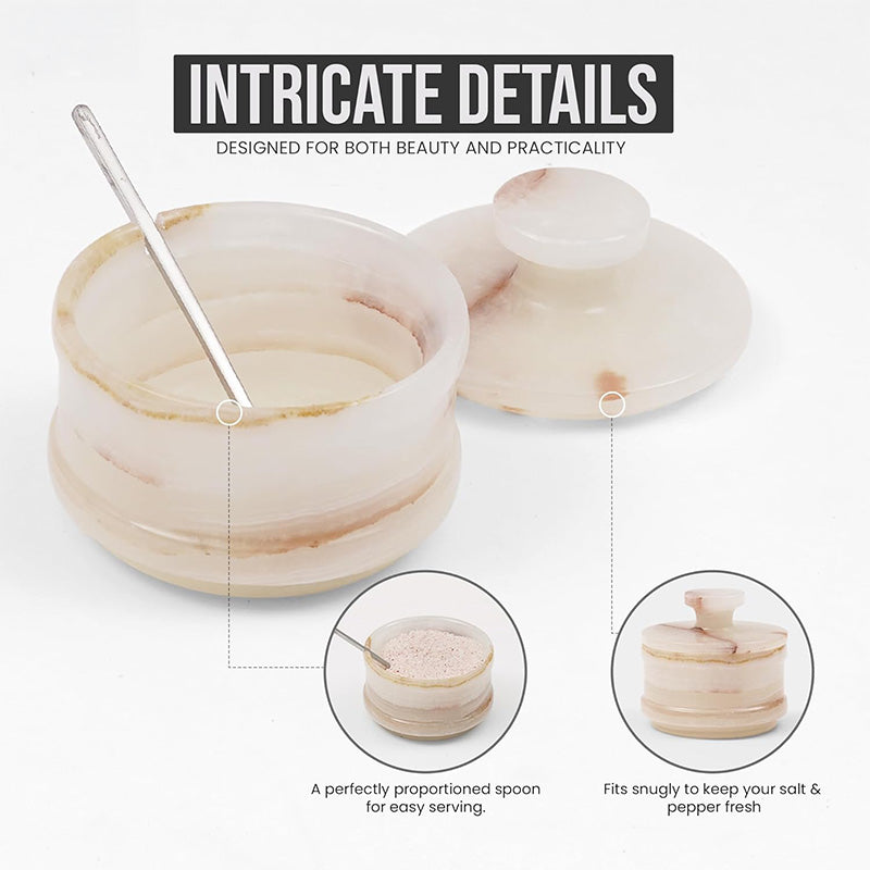 Beautiful Storage with a Lid and Spoon: Radicaln Marble Salt Cellar
