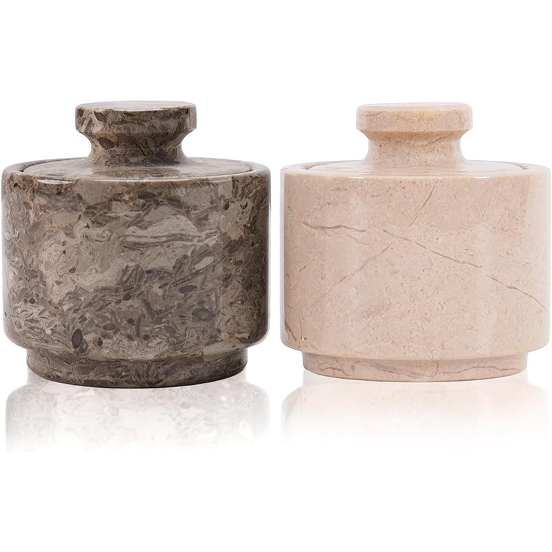 Elegant Storage for Everyday Needs with a Set of Two Marble Salt Cellars