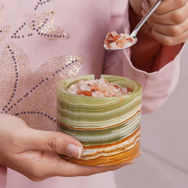 Your kitchen or dining table looks more elegant with this exquisitely made Marble Salt Cellar with Tray. This flexible item, which combines style and functionality, is a chic option for food preparation and home décor. It may be used as a seasoning bowl and an attractive trinket box.