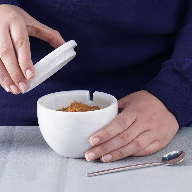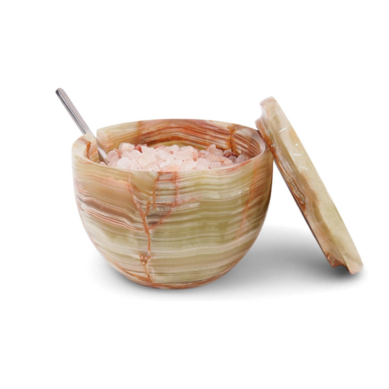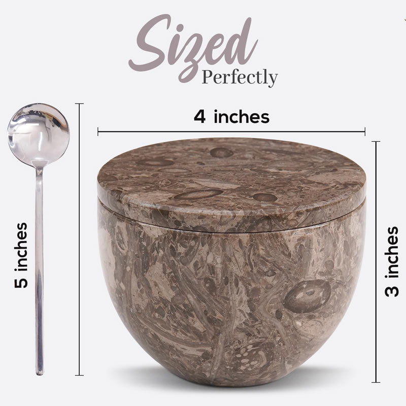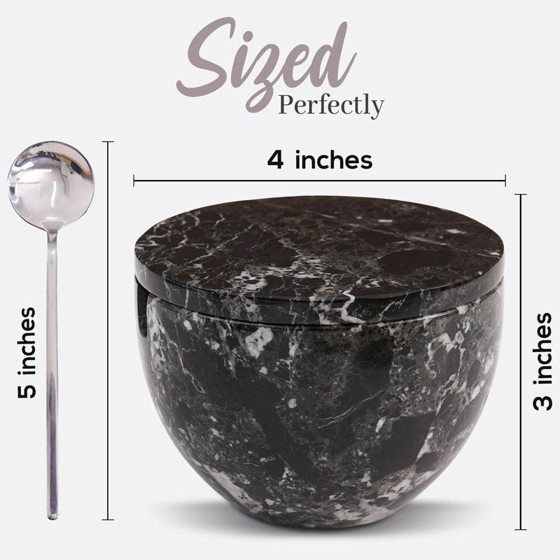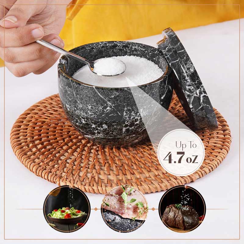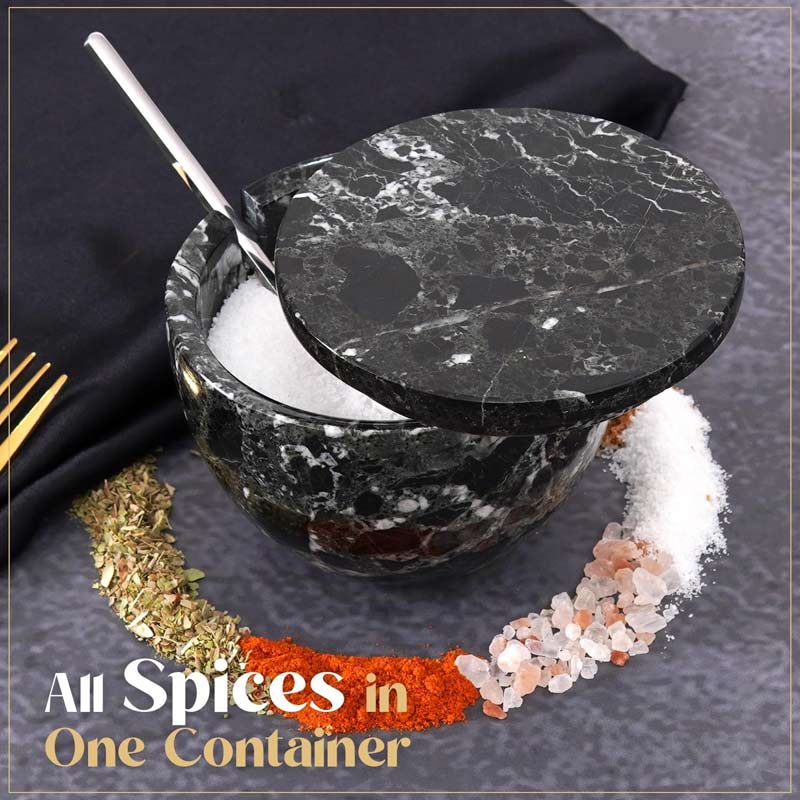 WHAT IS INCLUDED:1x Premium Marble Salt Cellar With Lid And Spoon. Comes Along With securely packaged with Marblous Kraft branded packaging.