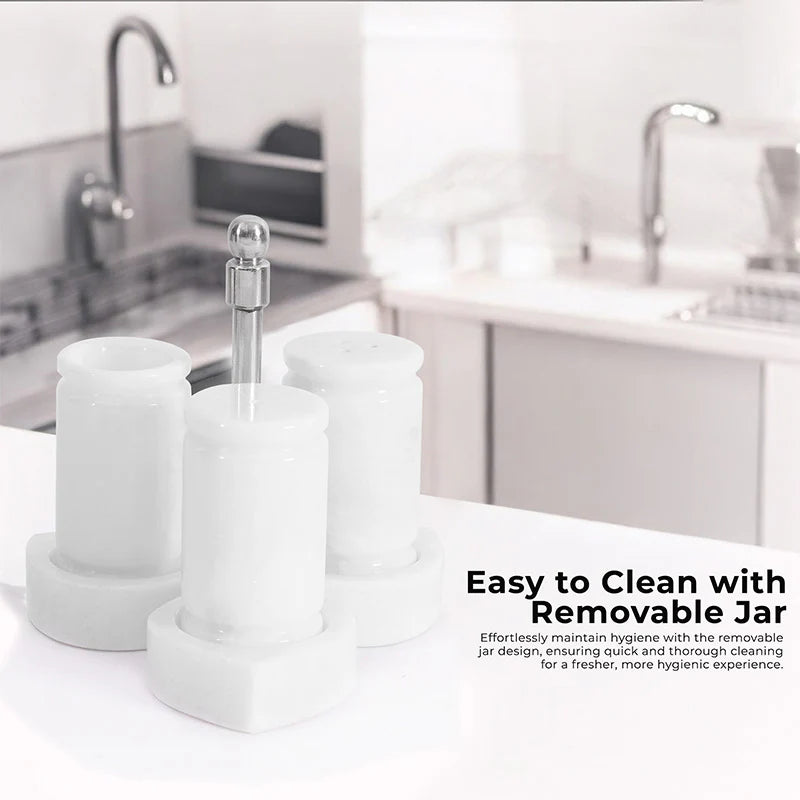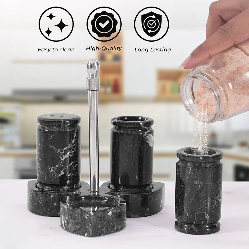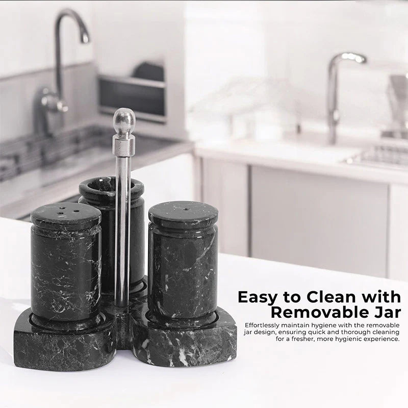 WHAT'S INCLUDED:1 x Set of 3 Salt & Pepper With 1 x Tray. Comes along with Secure & Fragile Packaging.