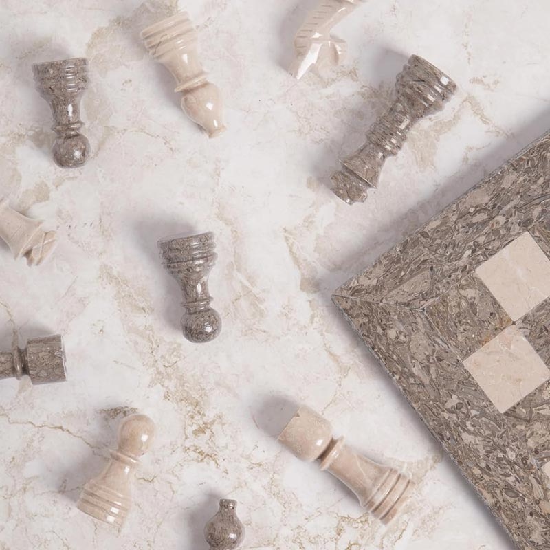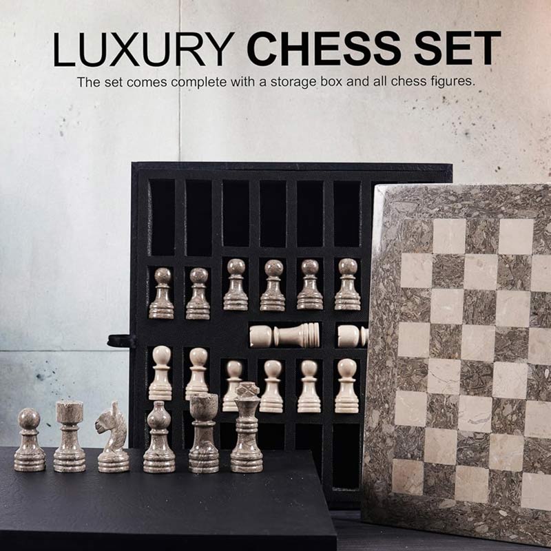MATERIAL : This chess set is fully handmade from high-quality marble onyx. Chess Board & Chess Figures are fully hand polished.